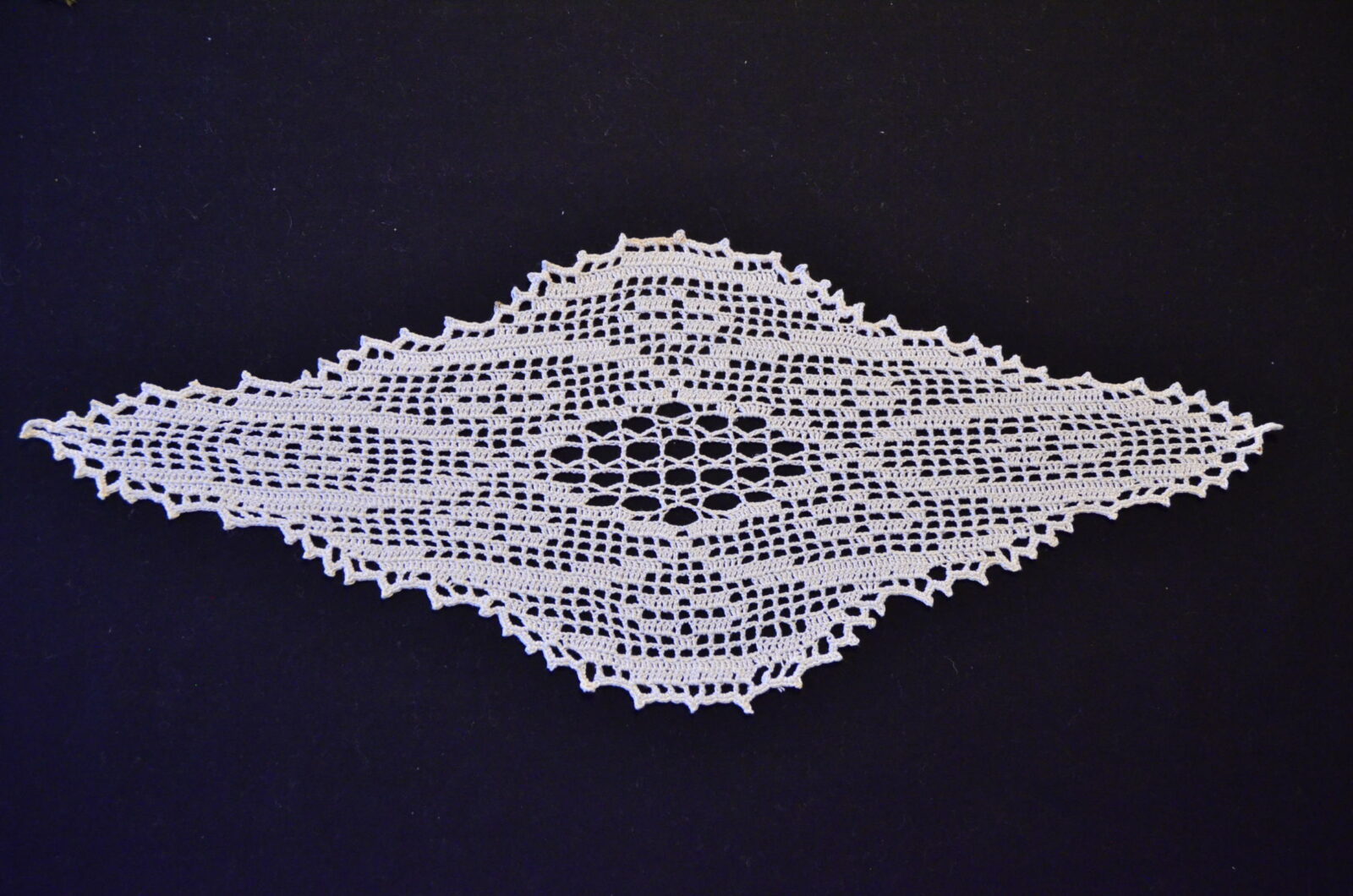 handgehäkeltes Deckchen, Vintage wollweiß 56 cm x 22 cm, Unikat