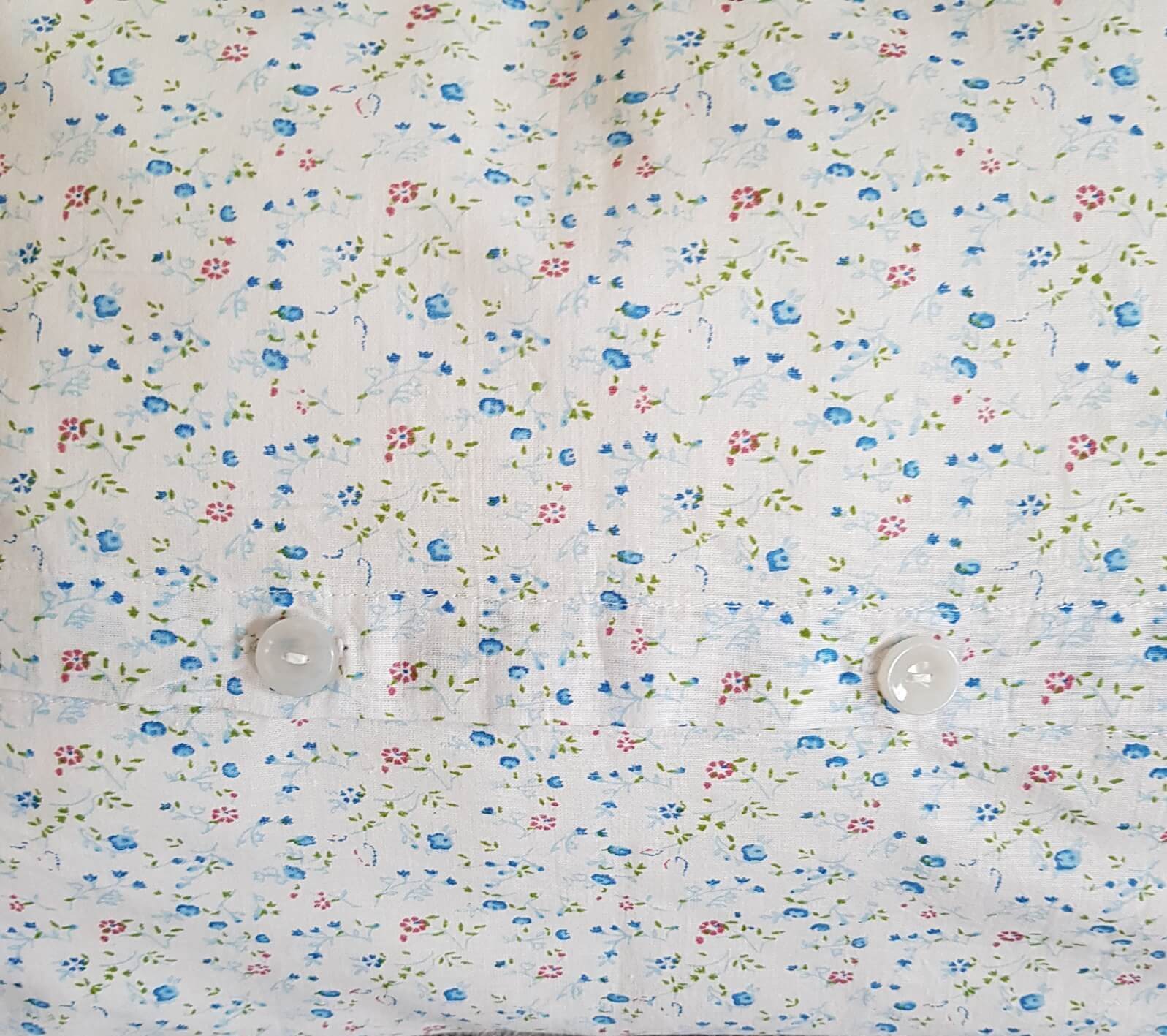 Der zarte Baumwollstoff ist vorgewaschen wegen der langen Lagerung im Wäscheschrank, der Stoff ist neu und unbenutzt. Die Knopfleiste kann wahlweise als Dekoration auf der Vorderseite angezeigt werden oder wie üblich auf der Rückseitig.