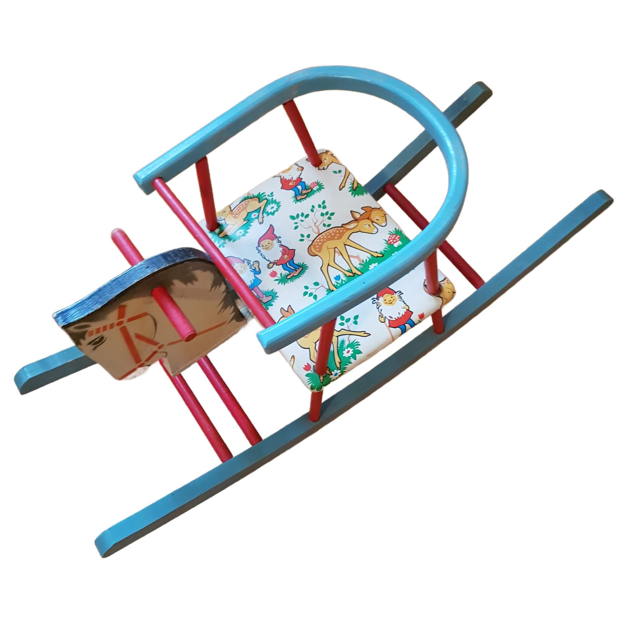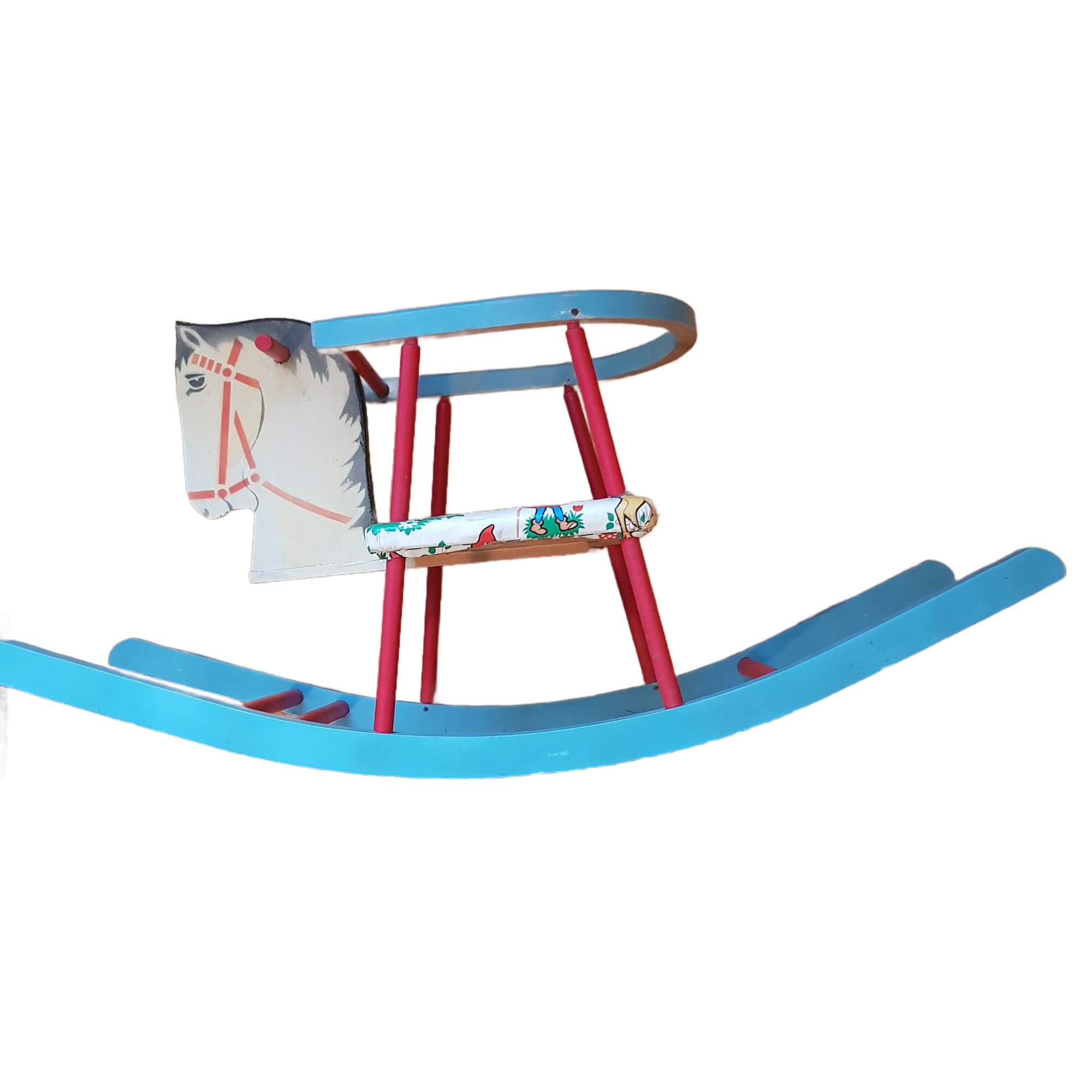 Die Farbe ist durch Abnutzung etwas unterschiedlich, ein neuer Anstrich macht aus diesem Schaukelpferd ein Schmuckstück